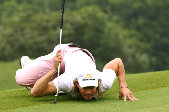 奥斯丁以坏脾气著名,他不擅长推杆,生气时会把推杆举过头顶砸头,这个动作让很多人印象深刻。然而,在奥斯丁43岁后,人们想到他时,会叫他“潜水侠”。
