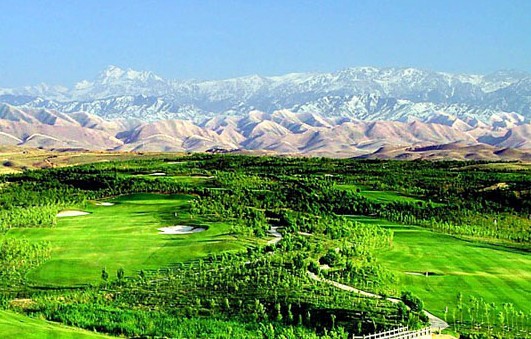 球场坐落在乌鲁木齐附近风景秀丽的水磨沟风景区,博格达峰天山脚下的大漠边缘。这个地点正好位于整个亚洲的中心,而且是地球上离海洋最远的高尔夫球场。