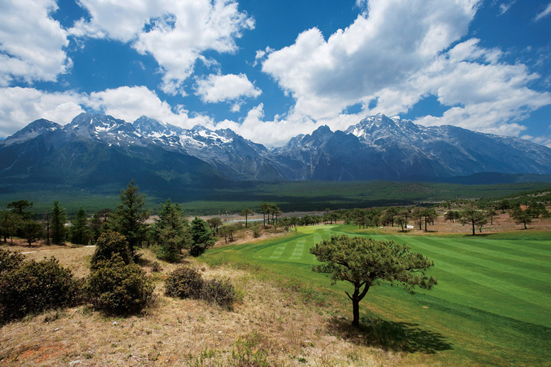 这个高度不仅是中国之最,也跻身全球海拔最高的球场之一,同时也是北半球唯一的雪山球场。这座直面海拔5596米的玉龙雪山的18洞球场,平均海拔接近3000米,第15洞发球台海拔达到3100米。