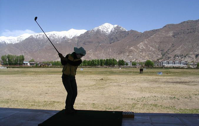 2001年建成的拉萨布达拉练习场,海拔高达4895米。普通人在那里连打十粒球肯定气喘吁吁。