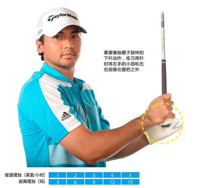 我认识的一些业余球员,他们学会了挥杆时杆头滞后,但不是每次都能打得很远。有的人甚至会打出右曲球。那是因为他们没有稳定地把握杆头滞后的时机。这招会有帮助:握杆时,把左手的小指和无名指悬在握把外(见上图)。这样在挥杆时,会清楚地感觉到下杆时哪里出现滞后,因为你的握杆很柔和。这个练习不仅能帮你改善杆头滞后的感觉,还能帮你增加滞后。继续挥杆,同时寻找释放滞后并摆正杆面的恰当时机。这个时机应该是在下杆到大腿高度时。如果你的开球很直,而且还比以前远了15码,说明你做对了。(来源:《高尔夫》杂志)