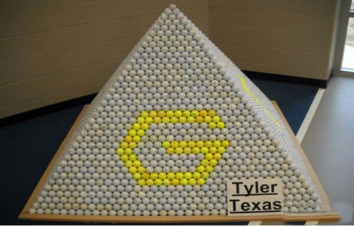 2014年1月31日,美国德克萨斯州的Mamie G Griffin 小学的第一发球台机构和卡尔-希普曼共同用高尔夫球堆出“金字塔”,共包括16206个小白球。