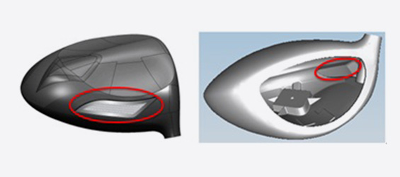 图左为独立的外加配重块,图右则是杆头内壁加厚,两个动作增加趾部质量来保证“小左曲”的产生