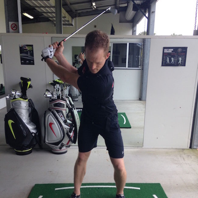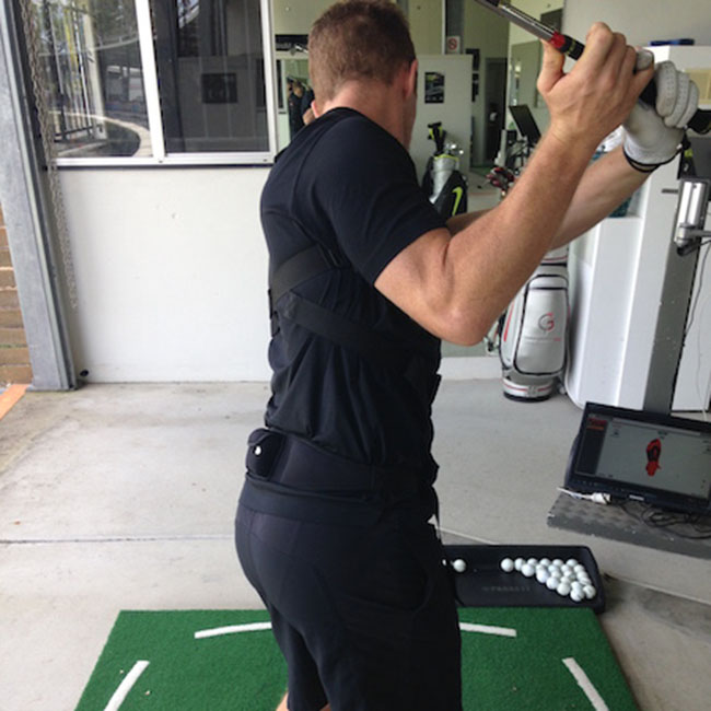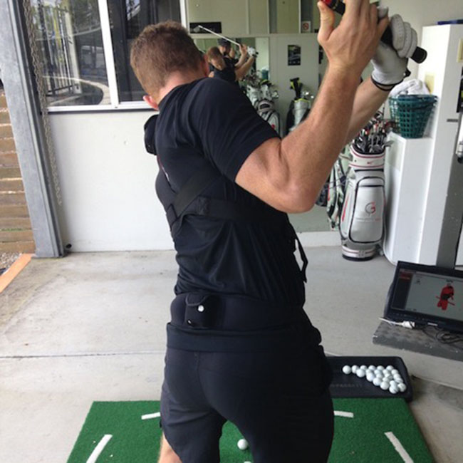 现代的科技在量化我们挥杆过程中身体的旋转程度可谓功不可没。当前最为流行、最权威的动作分析模式为K-Vest。K-Vest是一套完整的体感数据训练系统,其3个传感器分别装在使用者的手、腰和背部,挥杆时传感器收集到的实时数据可在显示器上虚拟回放,利用精密的芯片系统,挥杆时身体所发出的实时数据可传送到计算机内,并以数据分析的方式全面剖析挥杆技术,从而提升球技。虽然K-Vest会给予身体旋转“量”上的建议,但还是由球手根据自身情况做最终决定。