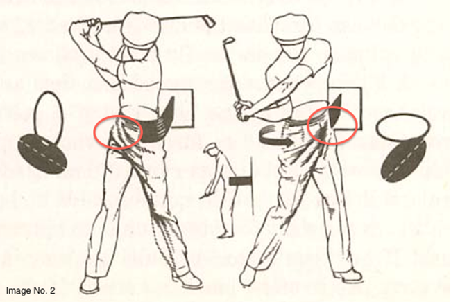 现在,我们需要肩膀转起来,尤其需要将手肘的内侧朝向外(见图5)。这可以使得球杆在挥杆平面内运动。(见图6)