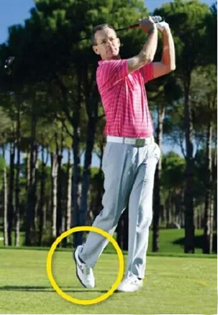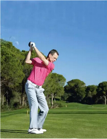 在练习场练习挥杆时,尽量避免一直无目的地连续击球。要找到合适的挥杆节奏才是重点,才能在不断练习之后帮助你打得更直。控制好挥杆节奏要从起杆开始。从起杆到上杆至顶点,前脚需要转动。这时双髋也开始转动,带动双臂、双手,让球杆顺利击中球,而最后活动的部位是双肩。