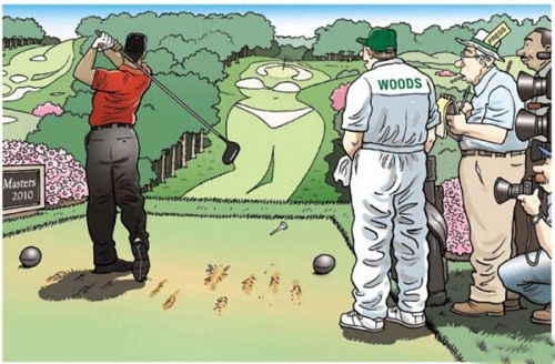 第二位球员开球,球却飞进树丛里,球员便问教练﹕“我哪儿出了问题?”