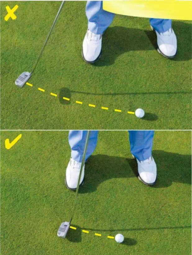 业余球员们经常容易忽略的一个问题是,用推杆的中心将球推出。这不仅会影响你对距离的控制,球推出后的方向也会发生偏差。