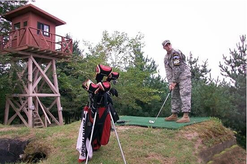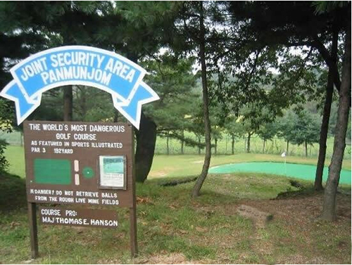 美国陆军有一个高尔夫球场,它地处非军事区,隔开了朝鲜和韩国。这是世界上唯一一个需要球友全副武装的球场,而球童实际上是训练有素的反狙击手。