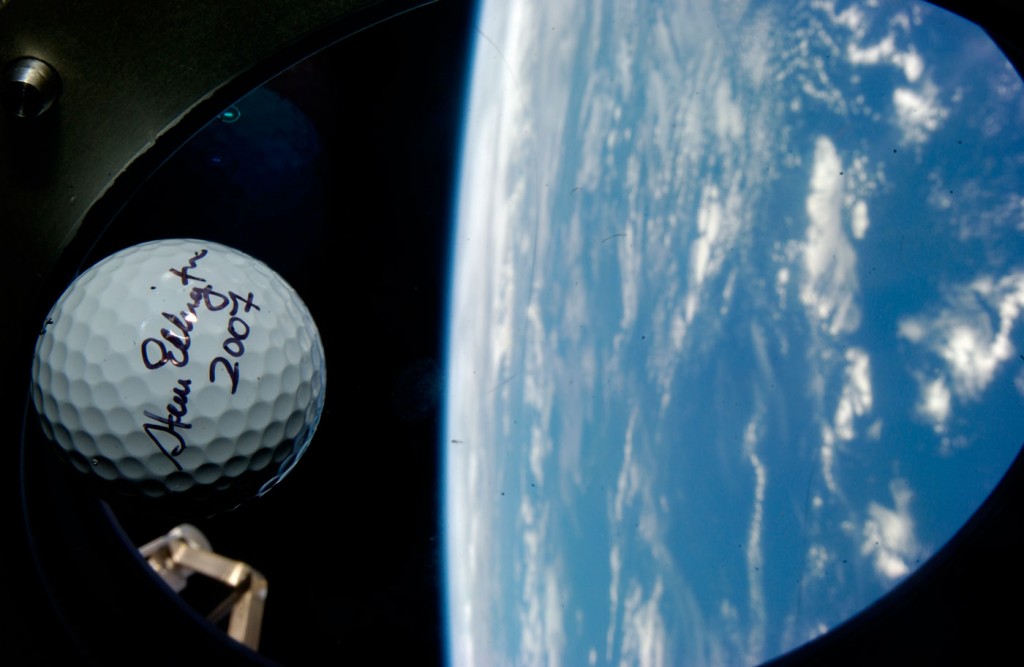 在空间站为期四个月居住期快结束时,Tani的同事送给他一个有Steve Elkington签名的高尔夫球。