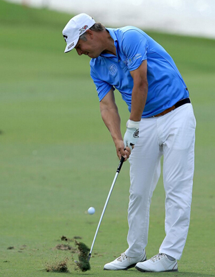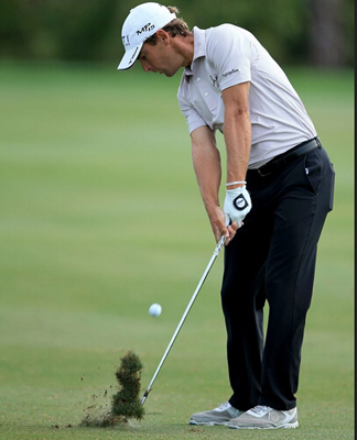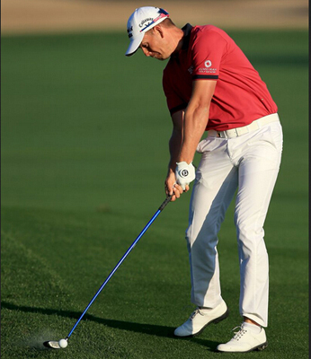 你会发现,虽然各路球星的上杆动作各异,收杆动作也各异,但在触球瞬间,他们的动作是那么的相似:双髋打开、左腿为轴、右肩低于左肩、保持头部位置。相似的原因只有一个——在这种动作之下,球手能够最大程度地平衡力量释放、方向控制和球的倒旋。