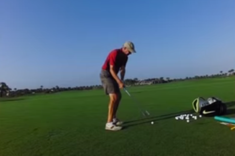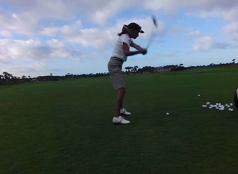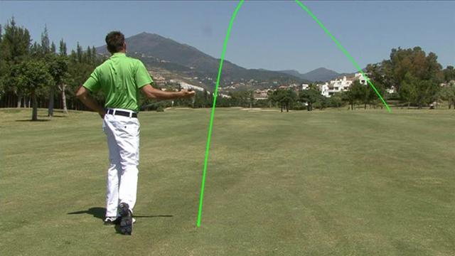 这种挥杆通常是手臂 “投掷”动作的结果,不仅仅是向下投掷,更多的是向外投掷。过早释放身体会导致厚击球。挥杆轨迹宽扁的球友,在上杆顶部球杆通常指向左侧。