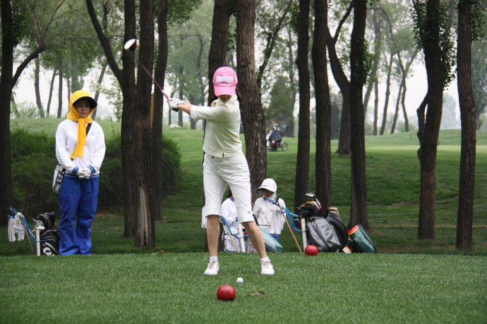 一个男选手在第一洞,瞄准球,正准备挥杆。突然一个声音从出发站传出来:“男选手不能在红梯上开球,请回到白梯上。”该男子抬起头看了看,没有理会,低下头继续瞄球准备挥杆。 声音再次响起:“请男选手回到白梯上开球!”语调明显高了一个八度。没有想到该男子更加生气,站直身体就朝着出发站喊:“能闭上你的臭嘴嘛?我在红梯上打我的第二杆!”