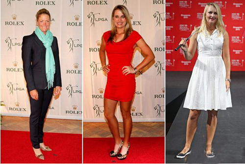 爱美之心人皆有之,高尔夫美女球员们也不另外,她们无论是在赛场上,还是在赛场外,都受到人们的关注。赛场外的她们纷纷换上华彩熠熠的礼服美裙,一展赛场外的女人风韵。