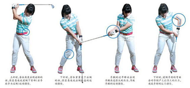 引起高尔夫运动损伤的原因有很多,但是最普遍的有这四种:盲目模仿职业球员的挥杆动作;身体能力受限;错误的运动学顺序;不匹配的球具。