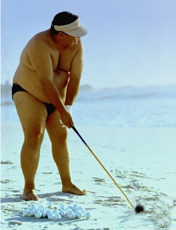 一位很胖的人去医院看病,大夫说他胖了一点,主要是运动量不足,于是劝告很胖的人把打高尔夫球作为减肥运动。“那对我不合适,”患者说。“我从前试过。如果我把球放在我能打着的地方,我就看不见球。反过来,我一要把球放在能看见的地方,我又打不着了!”
