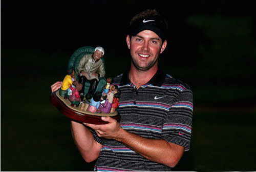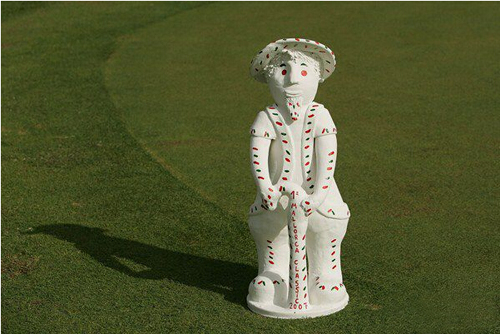 塞尔吉奥-加西亚已经收集了许多独特的冠军奖杯,但最特别的一件可能是他在2011年卡斯特罗大师赛获得的。加西亚以创纪录的11杆优势战胜同胞康斯塔诺,将上图中这个右手持杆、左手伸出大拇指的大头人偶抱回家。