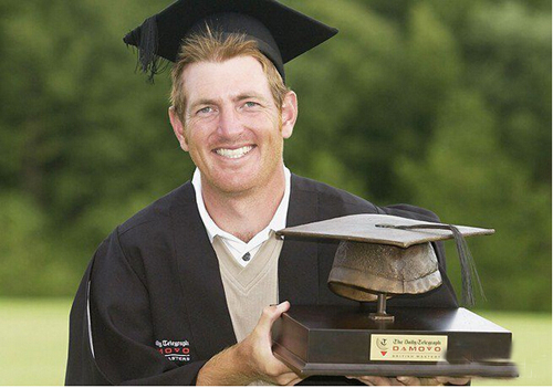 格雷格-欧文并不是在毕业典礼上获得学位,而是领取冠军奖杯。The Daily Telegraph Damovo英国大师赛仅在2003年和2004年举办了两年。欧文在2003年夺冠。