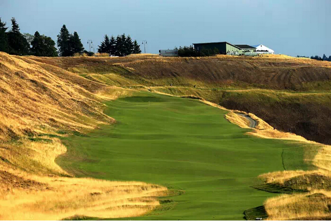 钱伯斯湾林克斯球场2007年建成并投入使用。为了迎接美国公开赛,球场做了一些特别的设置。这里的球道绝对够宽阔,比东部那些球道狭窄的园景球场要温和许多。但钱伯斯湾的球道两侧充满凶险,小球一旦进入便无机会“生还”。大风也会成为钱伯斯湾的主要障碍。至于果岭速度,相信USGA不会仁慈,让发挥出色的球员打出标准杆仍是今年美国公开赛的主旋律。