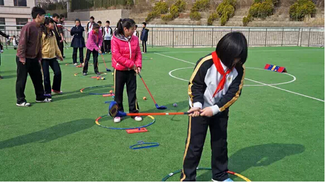 除了有我们耳熟能详的各高尔夫学院励志孕育一批批高尔夫有为青少年外,现在更有许多小学也开设了高尔夫课程,是培养兴趣从小做起呢?还是高尔夫运动对孩子成长的益处实在甚多?株洲市的某小学就在一周连续4节的体育课程中有一节来学习高尔夫球。
