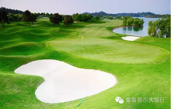 B场以湖景为主的山谷型球道。球道均沿着自然的湖岸设计,拥有丰富的水域障碍,为球友提供了一个挑战自我的挥杆场所。
