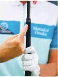 无论你是交叉握杆法还是重叠握杆法,关键就是让左手拇指放在球杆的中央,这样你向下看时,能够看到两到三个指关节。