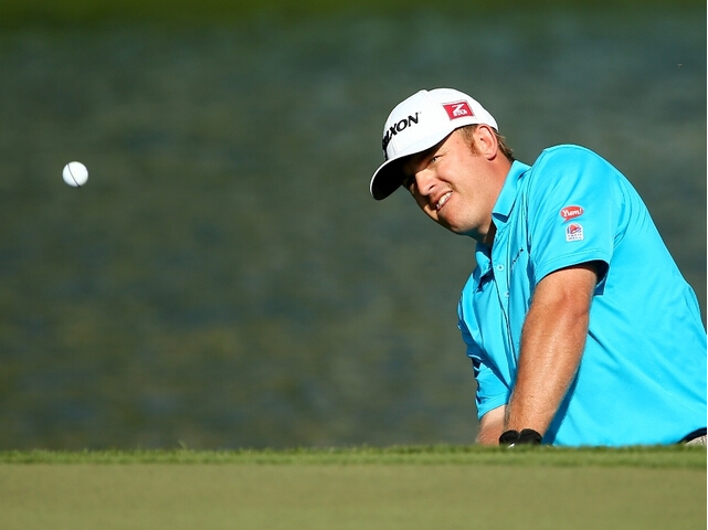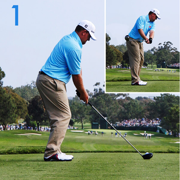 在上杆时,他的手腕稍有转动,而在落杆时几乎锁定住了。这是将球打远的一个好办法(尽管不一定直)。注意看他在落杆时是腿是如何弯曲的,就像Sam Snead那样。