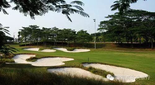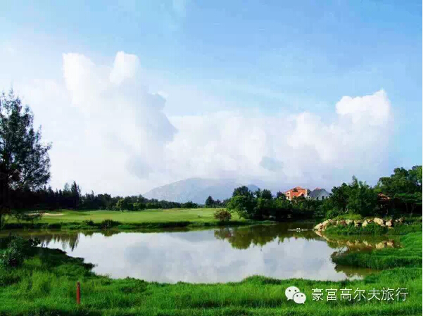 面向浩瀚蔚蓝的马銮海湾,背靠玳瑁山,千年古树以及奇岩怪石点缀在各个球道之间,波光粼粼的小湖上野鸭、白鹭竞相翱翔,芒果林、银桦林、香蕉、三角梅、凤凰木、木棉花、刺桐及樱花构成自然美景。据“五龙奇珠”之势,拥瀚海、涛声、金沙、古洞、奇石、名木于一体,自然天成的景色及国际球场大师Ronald Fream的专业理念,使其更具知名的Pebble Beach球场。