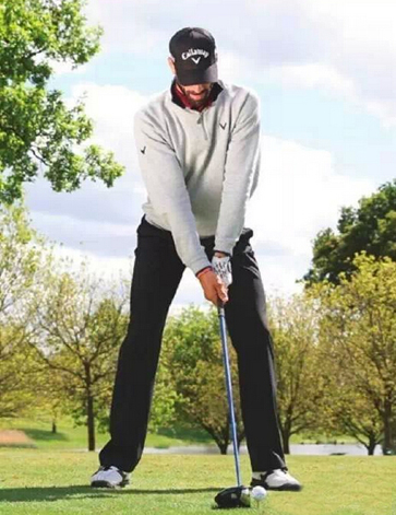 首先,可以模仿奎罗斯比常规站位更宽一些的站位姿势,这可以为挥杆提供稳定的基础;更加靠前的球位,帮助拥有更加倾斜的肩膀角度,帮助在击球的时候拥有更加向上的角度,让球产生更高的起飞角度和更远的飞行距离。