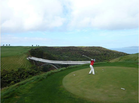 新西兰北部地区(Northland)被称为“没有冬季的北方”,这里除了茂密的贝壳杉森林内陆,波光粼粼、延绵无尽的海岸线,丰富多彩的水上运动,还坐落着著名的贝壳杉悬崖锦标赛高尔夫球场(标准杆 72 杆)。来自佛罗里达州的 David Harman 为这个球场设计了一系列惊险而刺激的球洞,或位于太平洋海岸的峭壁悬崖上,或蜿蜒穿越内陆的沼泽、森林及田野。