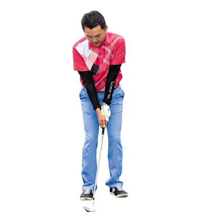 和全挥杆不同,短切球技术要求下盘不能转移重心,尽量减少下半身的动作。上杆采用引杆动作,使杆头早早就位。要避免的错误是使用手腕力量,致使杆头翘起,这是大忌,容易出现砸球的错误动作。