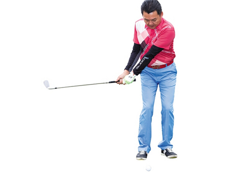 将小皮球放置在两臂中间,你要控制手臂,使之保持一个稳定紧凑的角度,夹紧皮球就意味着无法翻转手臂,所以该练习的目标是稳固挥杆轨迹,尽量减少手部动作。当错误出现,皮球就会掉下来。