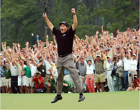 2004美国大师赛中,菲尔·米克尔森(Phil Mickelson)在18洞以一个高难度18尺长推“进洞”,他这一经典时刻载入了《体育画报》百大图片史册。因为在没有赢取美国大师赛之前,菲尔·米克尔森曾赢取无数过美巡赛冠军头衔,但是偏偏没有大满贯冠军头衔,这一胜利终结了这一尴尬的历史。在随后的 2006和2010大赛中,菲尔·米克尔森顶住压力,将这两届冠军收入囊中。