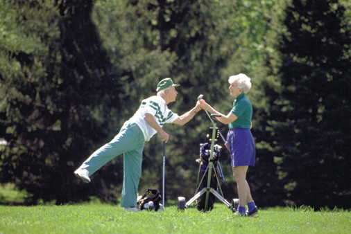 丈夫仍保持着好的风度,召唤出全身的力气将球从沙坑切进洞中。接着他把球拣出来,和妻子手挽着手走下果岭。“亲爱的,我们吃了一个柏忌,不过没关系,我们下一洞可以做得更好。”