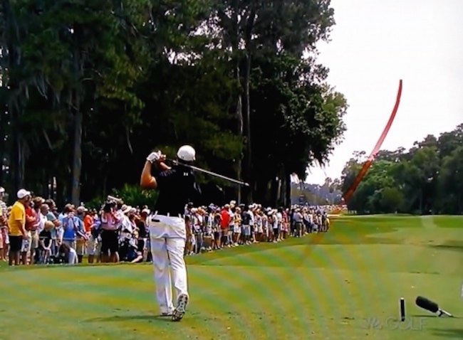 根据身体的平衡法则,挥杆过程中任何的动作改变都会通过身体的再平衡机制进行反馈。如果其它的各种方法都无法使你实现理想的左曲路线,这个方法不妨一试!