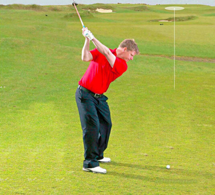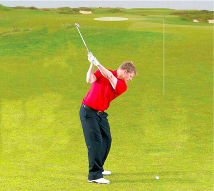 面对这种棘手的击球,球手容易身体发紧。这时候,你很容易加快挥杆速度,希望由此获得额外的击球距离。但是,这很容易击打出不规则的一击。这时,你需要的是保持正常的节奏,让球杆正常工作。保持平稳的节奏的一个好方法是,在上杆到顶点时,稍微停顿一下。