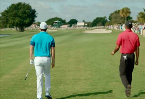 耐克在一个星期前发布的广告就像一个预言。在这个以小麦追星伍兹的真实故事拍摄的广告中,以麦克罗伊最终通过努力与伍兹站上了同一个发球台为结尾。而在大师赛第3轮之后,两人居然神奇地打出了相同的杆数,并在决赛轮同组出发。