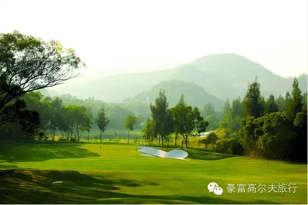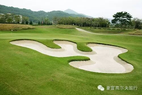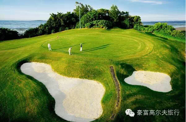 整球场分海景、山景部分,延绵2.6公里的海岸线与宽阔流畅的球道平行,瞭望辽阔的大海,又可踏山间闻鸟语,遍览峰峦叠嶂的美丽尽情挥杆乐趣。海天一色,翠色映水,绿色的草坪、人生得意尽欢。让挥杆的畅快穿梭于湖泊、小岛、绿茵、沙地之间,在激情挑战LINKS之余不忘尽情享受山海美景。