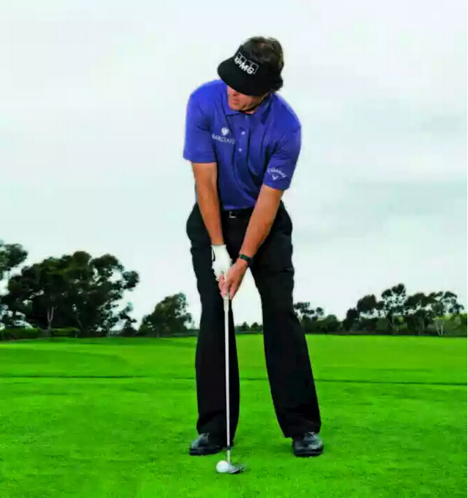 首先,定位时站位稍稍打开,球位设定在站位中间靠前一点的位置。