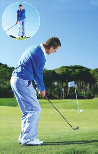 切滚球不需要过多的手腕动作,可以把它看作推杆动作的延伸,只需简单的肩部转动让球快速落地并且滚向洞杯。