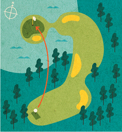 不在乎打得多么冒险,将球开的远远的,每杆够瞄准果岭旗杆,不计较后果。或者打两个球,选最佳球位。