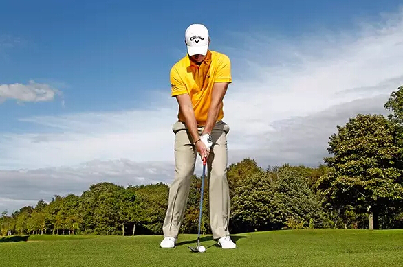练习长杆时我的目的是在击球区域建立一个良好的挥杆路径。球位靠近左脚能够保证双肩、双脚、双膝和髋部与目标线平行。重心多一些置于身体左侧。