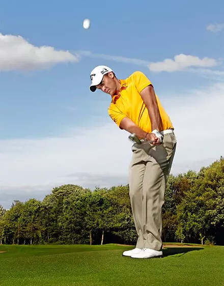 双臂延展、无多余动作表明起杆时我并没有操纵球杆;右肘关节位于身体前方,并没有弯折向身后运动。下半身基本上没有运动。