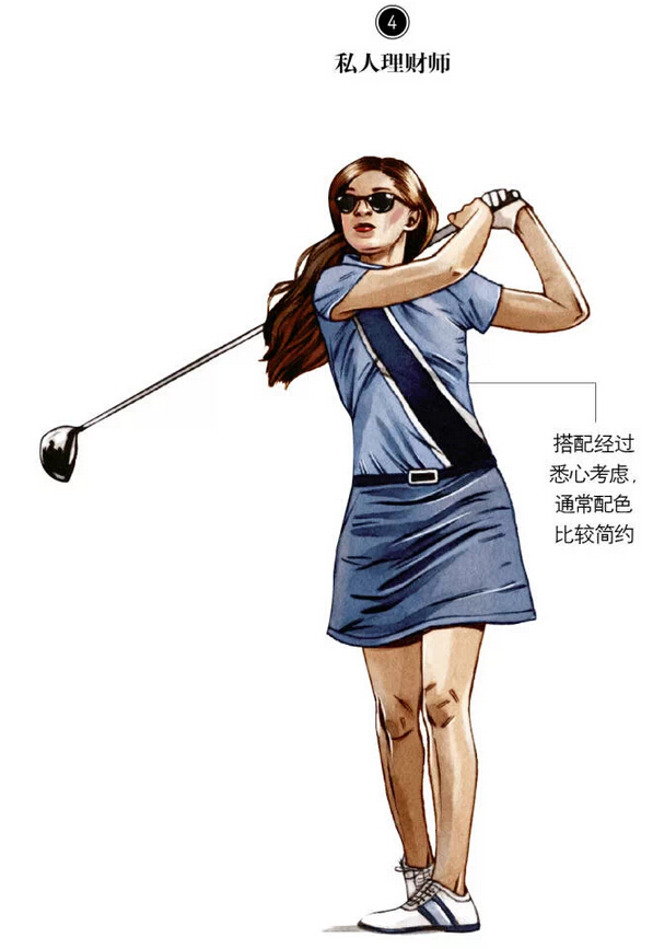 调性: 明显比投行女更擅长社交,能与客户进行各种互动。单差点,“职业圈”里的活跃分子。凭借过硬的球技和充分的赛前功课来取悦队友。“放松点,帕兹。我来搞定这个洞。在第14洞,我们可以打个漂亮的小右飞。这球场太适合你了。这个小镇发展得怎么样啊。”
