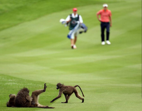 高尔夫球员在ON上果岭前,要面对狭窄的球道,棘手的沙坑,甚至有的时候还有短吻鳄,对,你没听错,是短吻鳄!!各种形状和体态的动物都可能去球场上转一转,也经常让球员的比赛暂停。下面来看一下球场上因这些动物而形成的搞怪时刻!