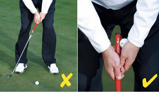 另外一个导致球员推杆动作不一致的问题是因为推杆过程中拥有过多的手腕动作。同样,这样的问题经常发生在长距离推杆中,当球员尝试让自己的推球更远的时候。通过控制手腕,这样可以保证你在击球的时候杆面恰到好处,避免过多的倾斜或者旋转。一个简单的训练方式是,在左手腕和推杆握把之间放置一颗球。用这样的方式进行推杆练习,注意不要让手腕夹住的球滑落或者偏离位置。这可以帮助你消除掉一些不必要的手腕动作,提高对推球距离的控制。