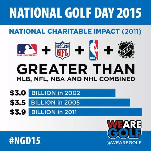 美国设立4月15日为国家高尔夫日,并发布了有关高尔夫对个人健康、对社会慈善、对经济发展、对于就业以及社会贡献等方面进行的数据统计,旨在说明高尔夫运动在美国社会的发展和积极影响力,以下摘自美国国家高尔夫网站。