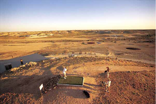 在阿德莱德北部850公里的地方,你会发现世界上最独特的球场之一——不见草木的库伯佩迪球场。此球场于1975年开放。在这里打球就意味着球手不得不面对沙化严重的红色果岭,巨石以及大土堆。恐怕你得租一块草皮带在身上了。来这里打球,最好傍晚再来,这样能避免地表灼热的气温以及南澳大利亚沙漠的大太阳。事实上,很多人选择夜里来这里打球,通常他们用的是那种夜间能发光的夜光球。