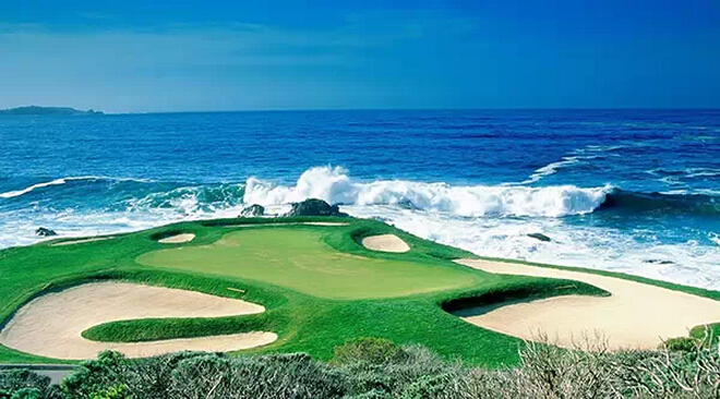 尼克劳斯说,如果在他的生命中还有一轮高尔夫可以打,那么他愿意打圆石滩球场。球场沿着太平洋的海岸建立,球道狭长难度大,果岭起伏,风景迷人。第七号洞蓝梯只有106码,但是开球面对大海,如果刮风选杆将相当困难。放到果岭中间,是最安全的,不要想着对着旗杆打。