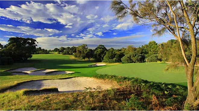皇家墨尔本西球场第六洞全长391米,拥有全场最难的果岭。第一杆相当重要,如果想要跨越右狗腿拐点的沙坑,需要开过200多米的长草。炮台式的果岭很难停球,果岭起伏让你很容易就出现三推。